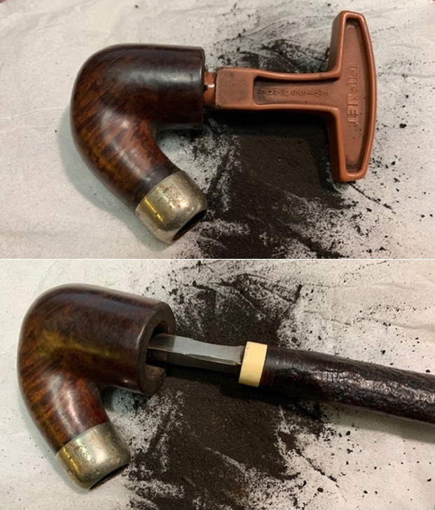 I cleaned out the shank and the sump in the mortise as well as the airway into the bowl and in the stem with alcohol, pipe cleaners and cotton swabs. It came out quite clean and smelled significantly better.