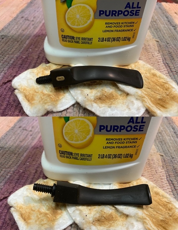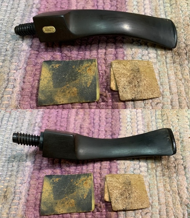 I set the bowl aside and turned my attention to the stem. I scrubbed the stem with Soft Scrub All Purpose cleaner to remove the residual oxidation. It works very well to remove deep oxidation.
