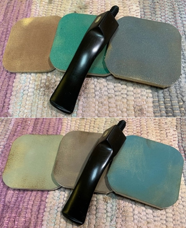 I polished the vulcanite stem with micromesh sanding pads – 1500-12000 grit pads. I wiped it down with Obsidian Oil after each sanding pad. I used Before & After Pipe Polish – both Fine and Extra Fine to further polish the stem.