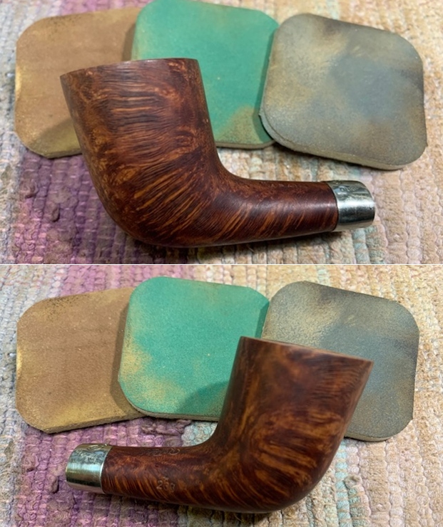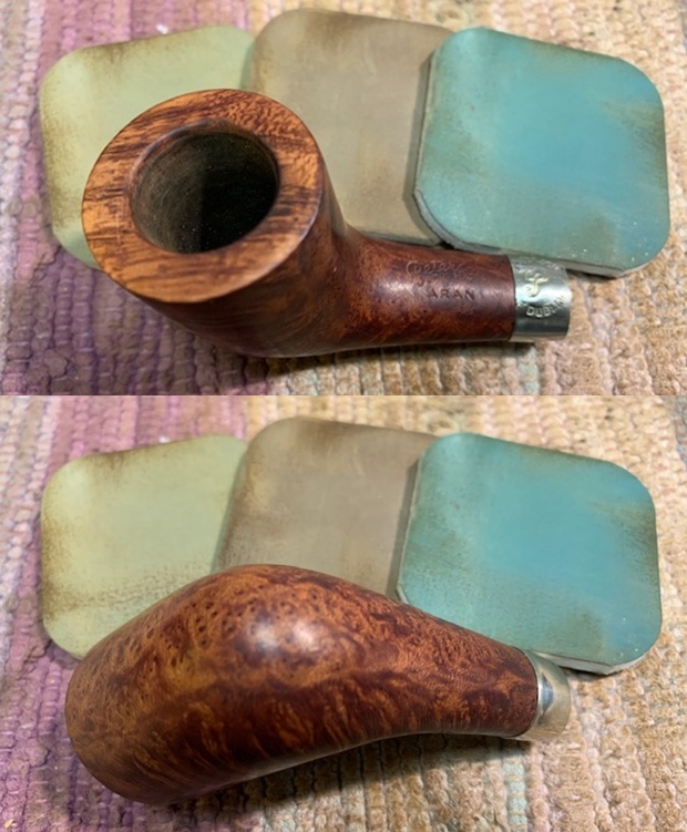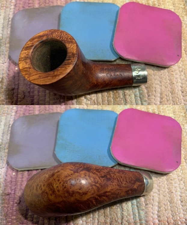 I took the pipe apart and took a photo of the pipe. It is a good looking pipe and has some great cross grain on the sides of the bowl.