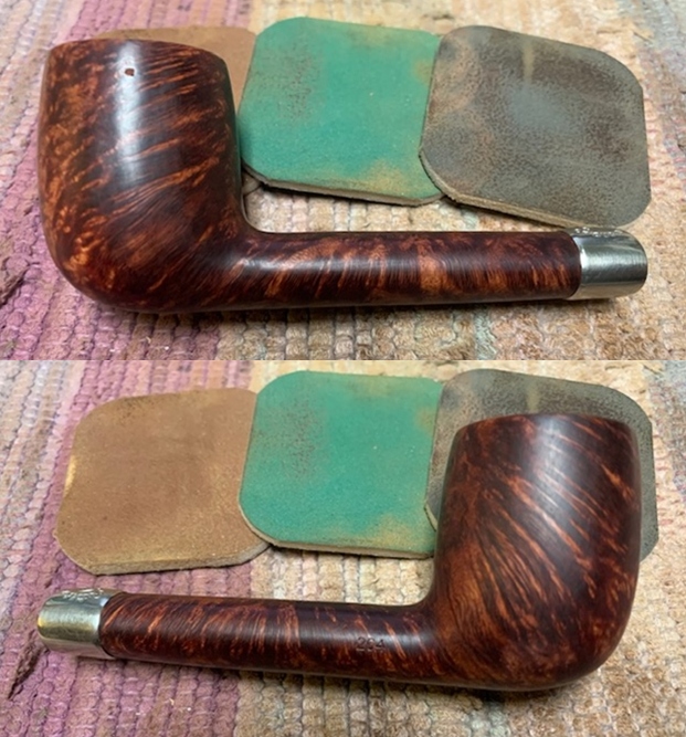 I took the pipe apart and took a photo of the pipe. It is a good looking pipe and has some great cross grain on the sides of the bowl.