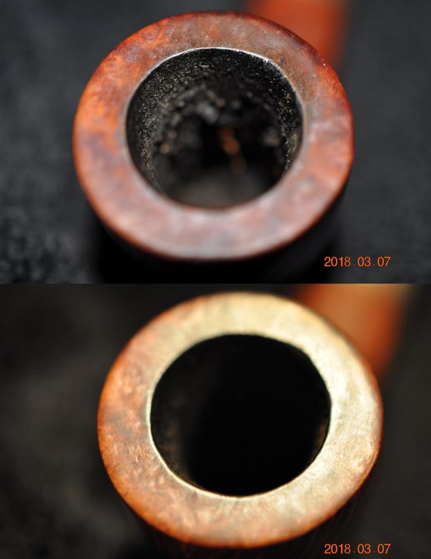 I scraped out the buildup in the shank with a dental spatula to remove the thick coat of tars and oils. I cleaned out the shank and the mortise as well as the airway into the bowl and in the stem with alcohol, pipe cleaners and cotton swabs. It came out quite clean and smelled significantly better.
