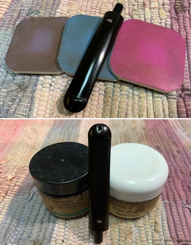 I polished the vulcanite stem with micromesh sanding pads – 1500-12000 grit pads. I wiped it down with a damp cloth after each sanding pad. I used Before & After Pipe Polish – both Fine and Extra Fine to further polish the stem.