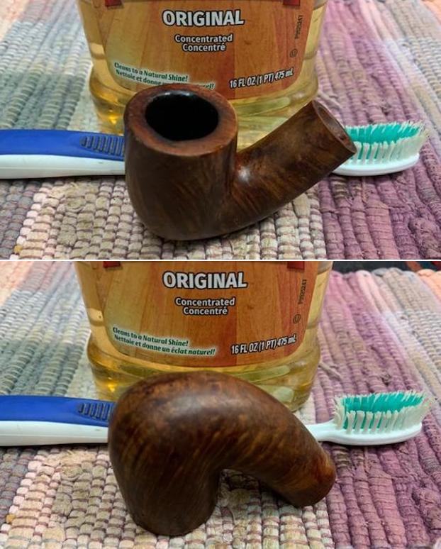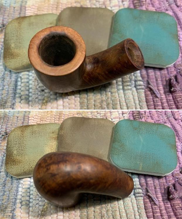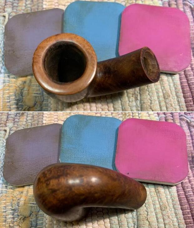 I scrubbed the pipe with undiluted Murphy’s Oil Soap and a tooth brush to remove the grime on the bowl and shank. I rinsed it off with warm running water and dried it off with a soft towel. The pictures show the grain around the sides of the pipe.