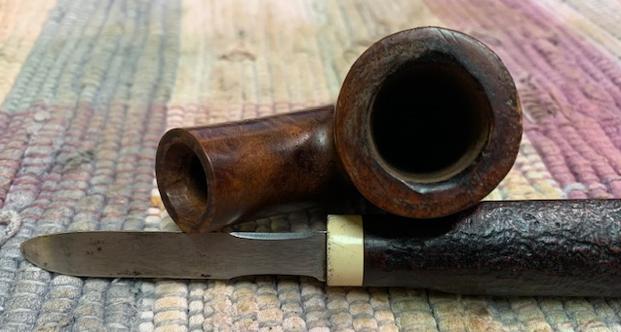 Now it was time to work on the pipe. To start my work on the pipe I reamed the bowl with a Savinelli Fitsall pipe knife. I finished the bowl by sanding the walls with 220 grit sandpaper wrapped around a piece of dowel.