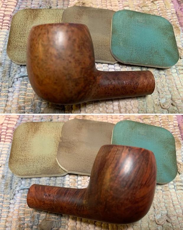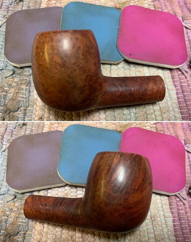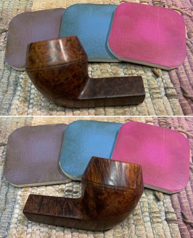 I polished the briar with micromesh sanding pads – dry sanding with 1500-12000 grit sanding pads. I wiped the bowl down with a damp cloth after each sanding pad.