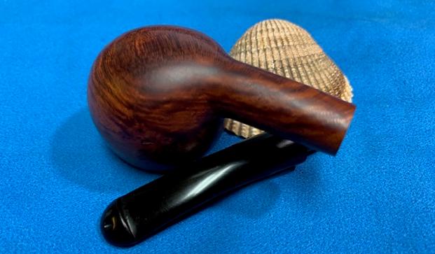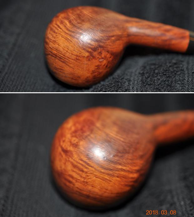 After changing the cotton cloth buffing wheel, speed remaining the same, carnauba wax is applied to stem and stummel. To complete the recommissioning of the BC, the pipe is given a rigorous hand buffing to raise the shine more and to remove any excess wax remaining on the surface.