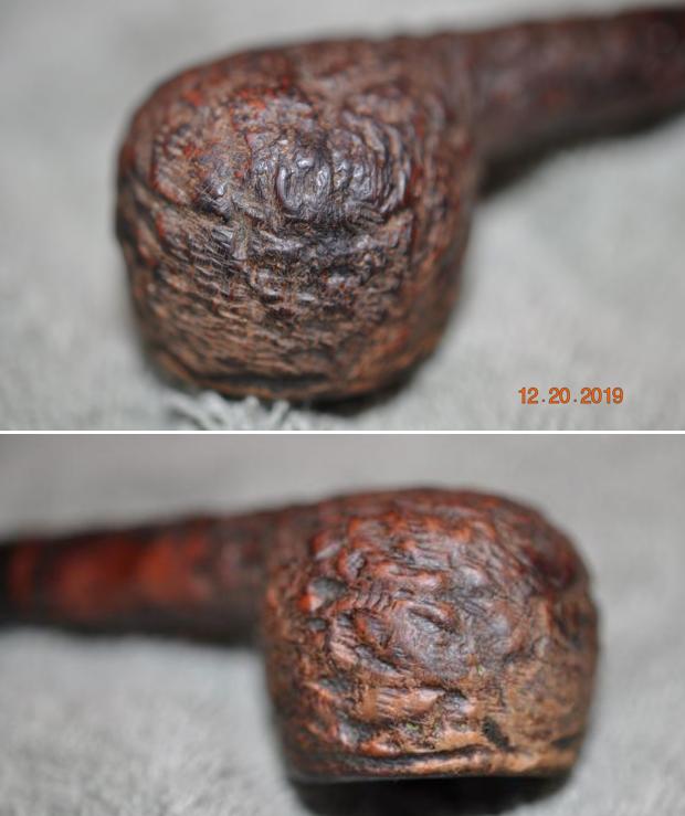 Jeff took a photo of the side and heel of the bowl to show the condition of the finish. You can see the well done and rugged rustication that is typical of Brigham pipes. Even under the dirt and debris of the years it looked very good.