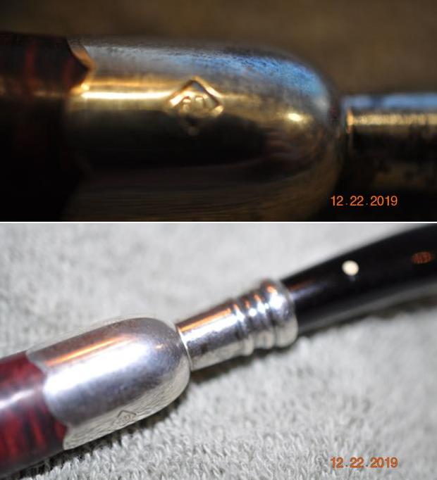 The stamping is clear and readable as noted above. The marks on the silver are also clear and readable on the ferrule. The turned silver cap on the end of the military bit stem is also quite beautiful.