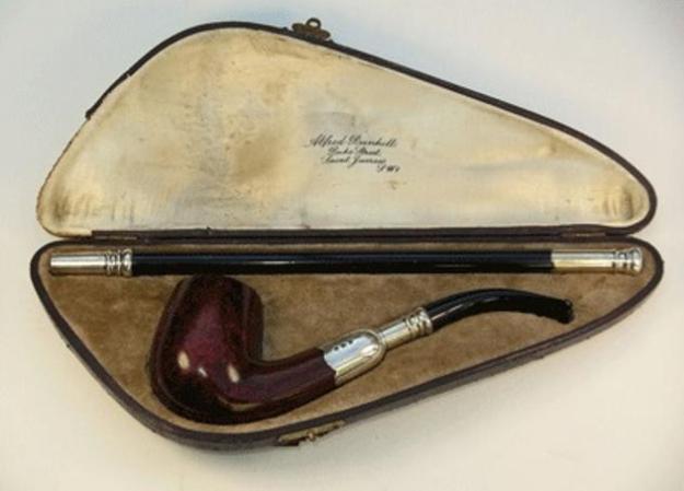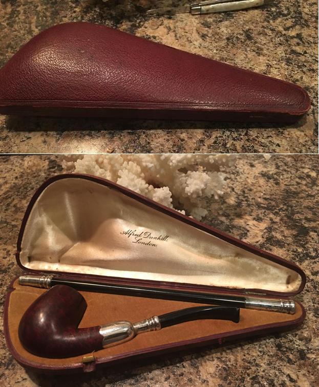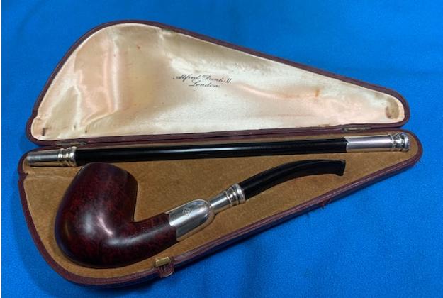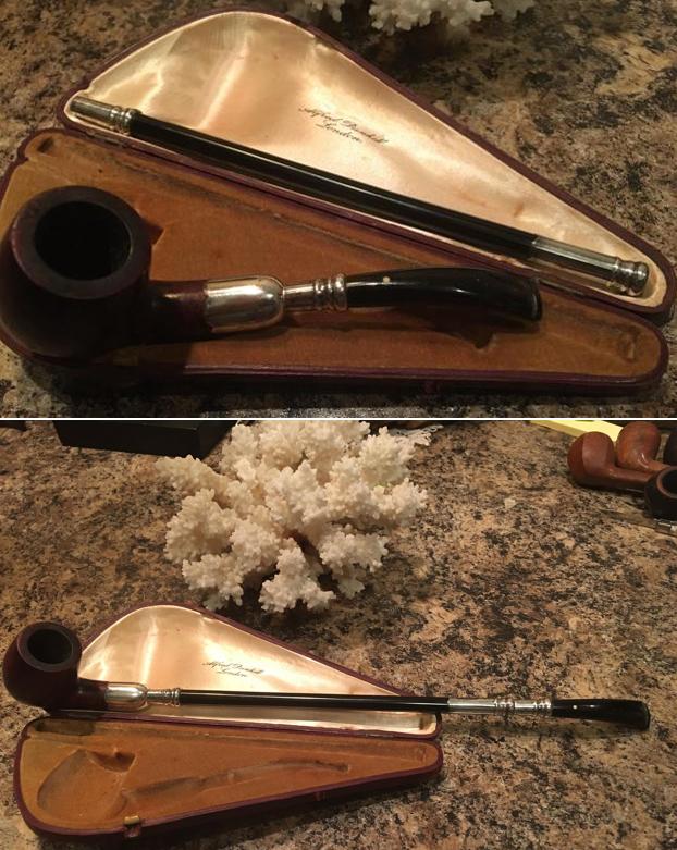 I posted the above picture of the pipe on the Vintage Dunhill Collectors Group on Facebook to see if the folks there could help learn about the pipe while I waited for its arrival. Several of the readers suggested I look on both Pipedia and Pipephil to help date the pipe and get a feel for its provenance. I figured I would do that so I turned to both sites and read the information contained in them (https://pipedia.org/wiki/Dunhill). One of the readers also sent me an intriguing link on Pipedia to a pipe that looked like the one I had purchased. I have attached the photo from that below. The photo below shows a 1920 Dunhill Cased Reading Pipe from the collection of the late Derek Green (https://pipedia.org/wiki/File:Dunhill_cased_reading_pipe_.jpg). It is very similar to the one that I was awaiting so it was a great link for me.