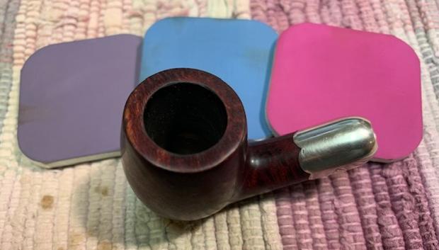 I polished the smooth rim top and edges with micromesh sanding pads – dry sanding it with 1500-12000 grit pads. After each pad I wiped the briar down with a damp cloth. I was able to remove the damage on the top and edges.