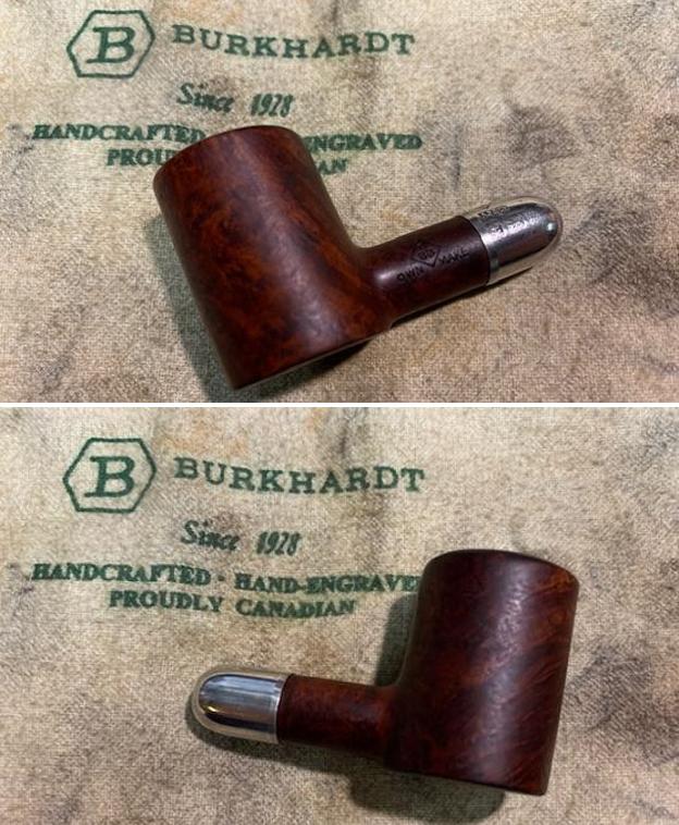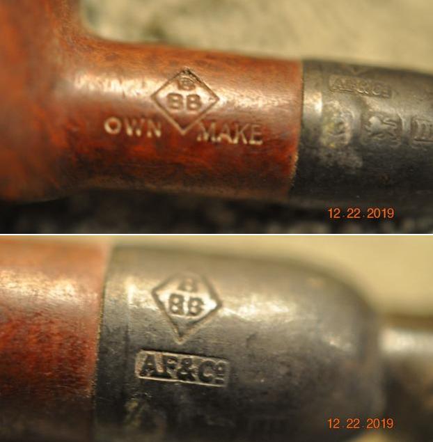 I have worked on a lot of BBB pipes over the years and never had the opportunity to work on one like this. It would be a great addition to my collection of older BBB pipes. From the photos the pipe appeared to be in good condition from the photo he sent me. He said that the pipe was stamped on the left side of the silver ferrule and read AF & Co over three hallmarks. The hallmarks are as follows: an anchor (Birmingham, England), a rampant lion (the symbol for quality of the silver) and the final one is a lower case “m” (the date stamp). I had him ship it to Jeff for cleanup so it would be a while before I held in hand.