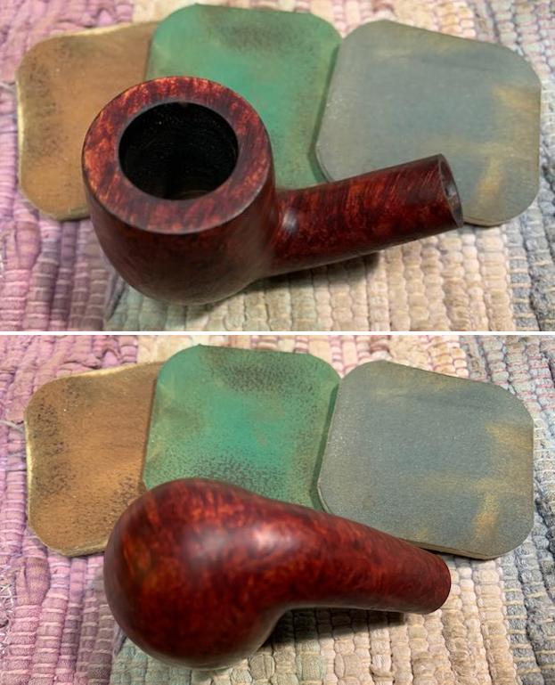 I decided to start my restoration work on this one by polishing the top and sides of the bowl with micromesh sanding pads – dry sanding it with 1500-12000 grit pads. After each pad I wiped the briar down with a damp cloth.