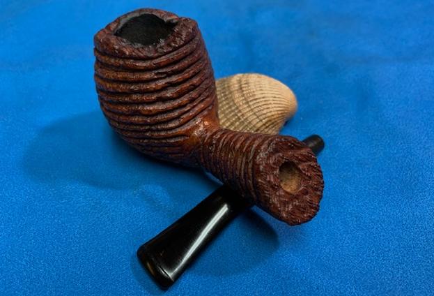 This restemmed, rusticated Stone Age K11 609 Italian Freehand is a beautiful looking pipe that combines a rusticated finish with a unique shaped. I may never know for sure if Savinelli made it but I think so! The brown stains on the bowl work well to highlight the finish. The polished turned fancy black vulcanite stem adds to the mix. I put the finished stem on the bowl and buffed it with Blue Diamond on the buffing wheel being careful to not buff the stamping. I gave the bowl multiple coats of Conservator’s Wax and the stem multiple coats of carnauba wax on the buffing wheel and followed that by buffing it with a clean buffing pad. I hand buffed the pipe with a microfiber cloth to deepen the shine. The finished pipe is quite nice and feels great in the hand. Give the finished pipe a look in the photos below. I can only tell you that like the other pipes I am working that it is much prettier in person than the photos capture. The dimensions of the pipe are Length: 6 inches, Height: 2 inches, Outside diameter of the bowl: 1 ½ inches, Chamber diameter: ¾ of an inch. The weight of the pipe is 54grams/1.90oz. It will soon be added to the Italian Pipe Makers section on the rebornpipes store. Thanks for walking through the restoration with me as I worked over another beautiful pipe. Remember we are not pipe owners; we are pipemen and women who hold our pipes in trust until they pass on into the trust of the next generation.