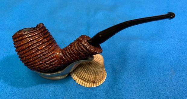 This restemmed, rusticated Stone Age K11 609 Italian Freehand is a beautiful looking pipe that combines a rusticated finish with a unique shaped. I may never know for sure if Savinelli made it but I think so! The brown stains on the bowl work well to highlight the finish. The polished turned fancy black vulcanite stem adds to the mix. I put the finished stem on the bowl and buffed it with Blue Diamond on the buffing wheel being careful to not buff the stamping. I gave the bowl multiple coats of Conservator’s Wax and the stem multiple coats of carnauba wax on the buffing wheel and followed that by buffing it with a clean buffing pad. I hand buffed the pipe with a microfiber cloth to deepen the shine. The finished pipe is quite nice and feels great in the hand. Give the finished pipe a look in the photos below. I can only tell you that like the other pipes I am working that it is much prettier in person than the photos capture. The dimensions of the pipe are Length: 6 inches, Height: 2 inches, Outside diameter of the bowl: 1 ½ inches, Chamber diameter: ¾ of an inch. The weight of the pipe is 54grams/1.90oz. It will soon be added to the Italian Pipe Makers section on the rebornpipes store. Thanks for walking through the restoration with me as I worked over another beautiful pipe. Remember we are not pipe owners; we are pipemen and women who hold our pipes in trust until they pass on into the trust of the next generation.