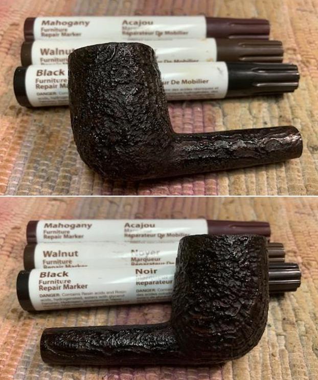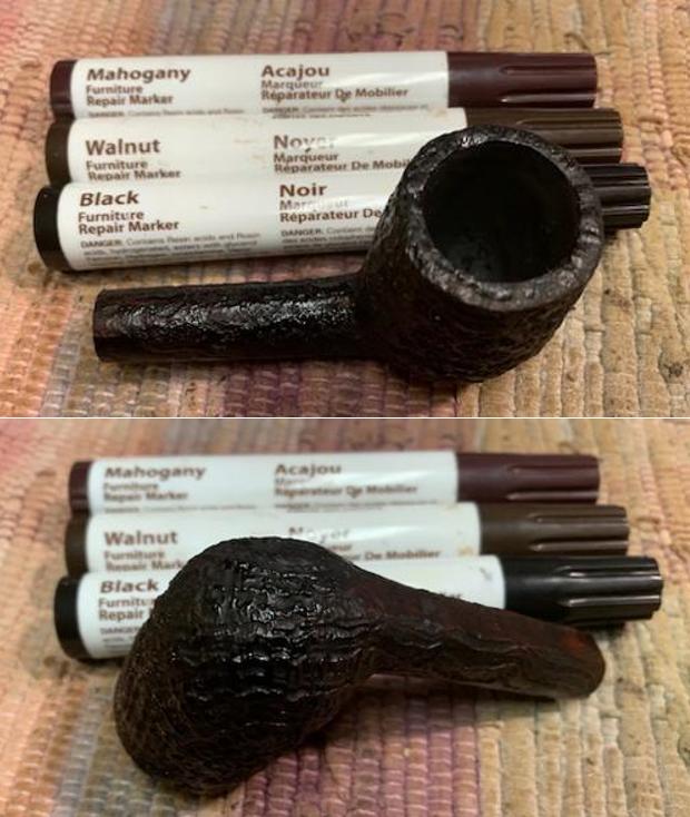 With the bowl repair finished I stained the bowl and rim with Mahogany, Walnut and Black stain pens to match the combination of stains used on the bowl that was not repaired. I was happy with the overall look of the pipe.