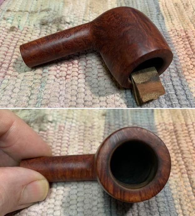 Ran into a bit of a snag and need your advice. This pipe came to me with the cracked acrylic shank cap. My attempts to remove it from the shank obviously failed with me breaking off the briar portion inserted into the cap. Now I’m looking at cleaning out the wood glued in the cap and setting an insert into the shank that will form the new ‘post’ for the cap. This is something I’ve not done before and reaching out to you and Charles was the first step. Of course, I need to clean the wood out of the cap and close and repair the cap. To connect – I have the acrylic or Delrin(?) push/pull tenons on hand, but that doesn’t seem like the right configuration. I know that you and Charles have used Delrin – but I’m not sure what this process is. Another thought is to take an old stem and flatten the shank facing and counter sink holes in the briar to seat a new mount of sorts for the cap…. Any thoughts to steer me in the right direction – an old write up? Thanks!