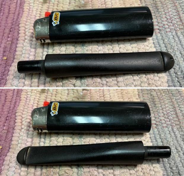 Earlier, the Fishtail stem went through a Before & After Deoxidizer soak. The stem looks good with no apparent residual oxidation. The upper and lower bit have tooth chatter, and the vulcanite surface is rough. To address the chatter, I use a Bic lighter and paint the bit with the flame to heat and expand the rubber compound. As the vulcanite heats, it also expands reclaiming its original disposition or at least in part. The before and after pictures show the results. This stem responded well which means that sanding will now be less.
