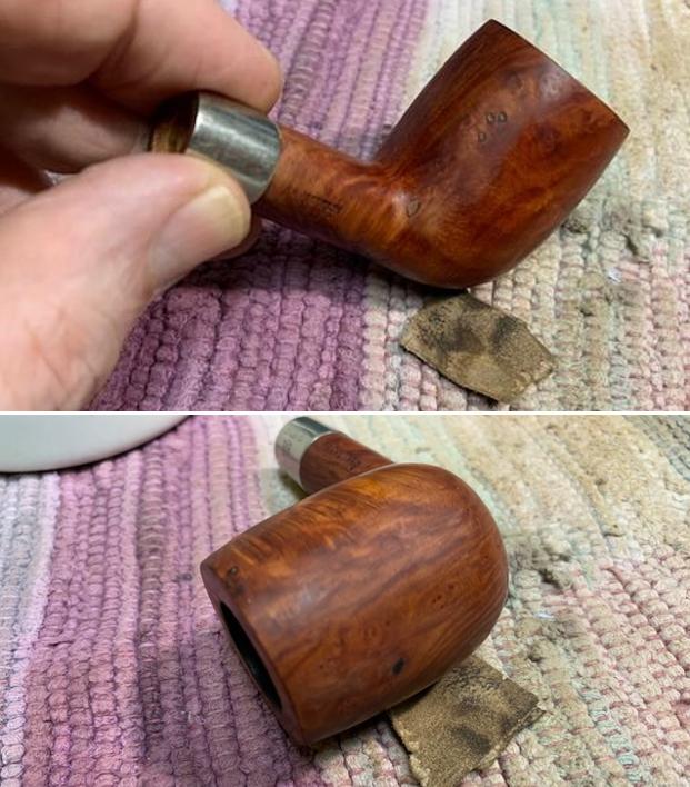 Three ideas begin to float in my mind regarding removal of the ferrule. First, to put the stummel in the freezer. This is a general method of unsticking things that are stuck. When the material cools, it contracts and often loosens stuck things. The second idea, if the freezer method doesn’t help, is to drip some acetone in the gap and the crack. If the shank cap is stuck because of being glued, acetone can help break down the glue. This might help, but I’m doubtful. The third idea is that the acrylic could be heated with a hot air gun and made more pliable – like vulcanite. This might avoid another break.