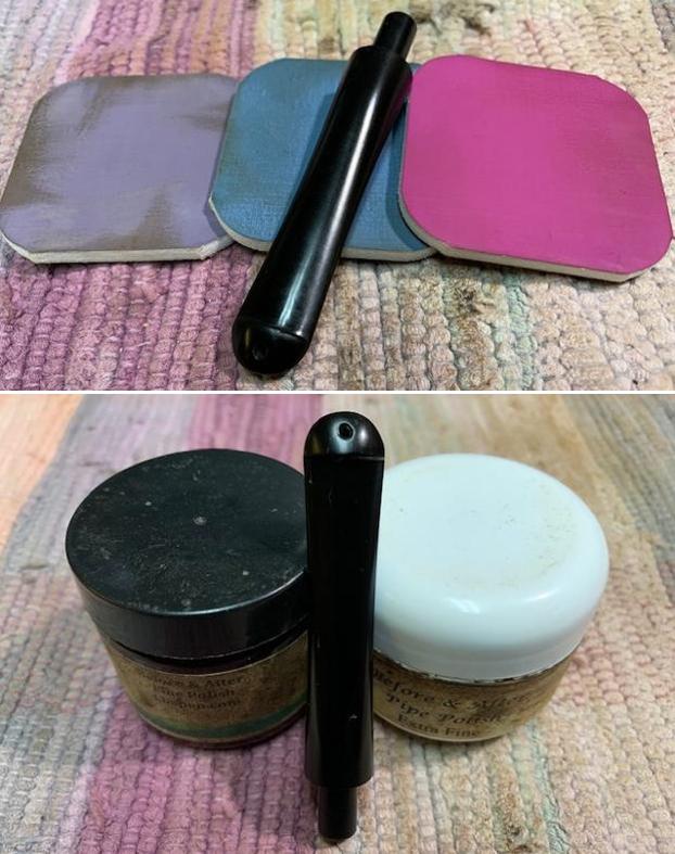 The next morning, a cotton pad wetted with alcohol and used to wipe down the newly dyed stummel to remove excess dye and to blend.