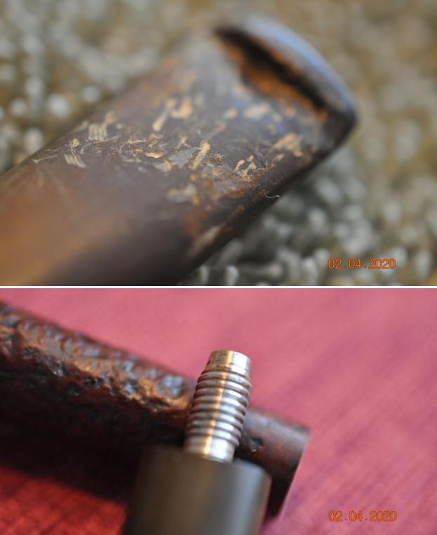I removed the stem from the shank and took a photo of the parts of the pipe. The metal tenon is in excellent condition and the threaded shank also looks very good.