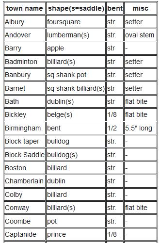 The pipe I am working on is a shape that is called a Captanide which is the town name for the Prince shape. (I did a bit of searching on Google for Captanide as a town in England and came up empty-handed.) The shape is listed in the chart to the left as having a 1/8 bent stem. That was helpful information as I was not sure what the Captanide stamping meant.