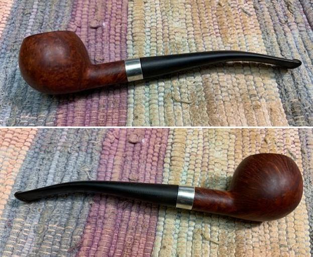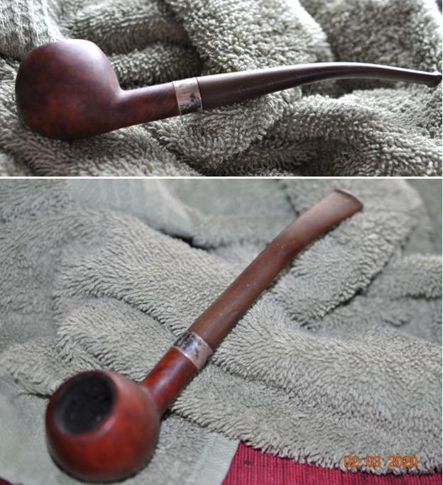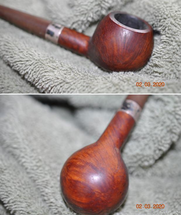 Jeff carefully cleaned the pipe. He reamed it with a PipNet pipe reamer and then cleaned up the reaming with a Savinelli Fitsall Pipe Knife. He scrubbed out the internals of the shank, stem and shank extension with alcohol, pipe cleaners and cotton swabs until the pipe was clean. He scrubbed the exterior of the bowl with Murphy’s Oil Soap and a tooth brush to remove the grime and grit on the briar and lava on the rim top. The finish looks much better and has a deep richness in the colour that highlights grain of the briar. The rim top looked good with some darkening on the top and damage to the back outer edge of the bowl. He soaked the stem in Briarville’s Pipe Stem Deoxidizer and scrubbed it with Soft Scrub to remove the remnants of oxidation. He also cleaned and polished the silver band til it glowed. When the pipe arrived here in Vancouver I was amazed it looked so good. Here are some photos of what I saw.