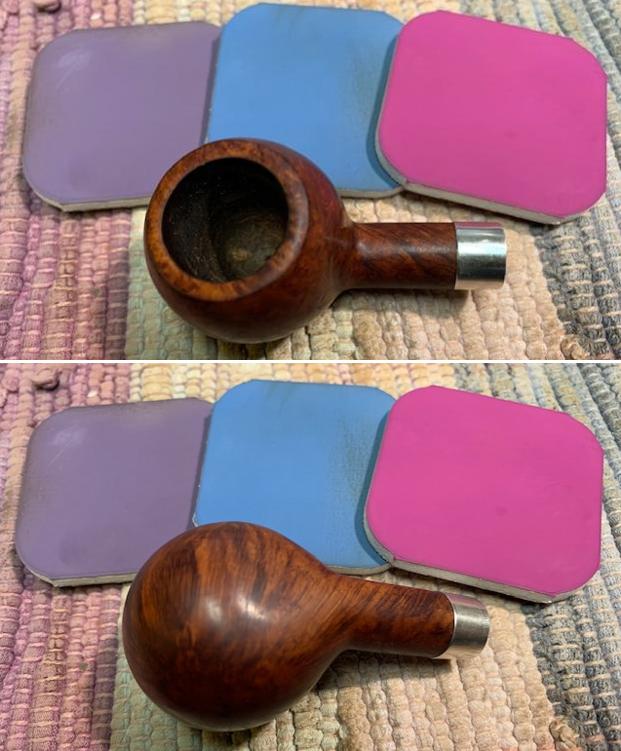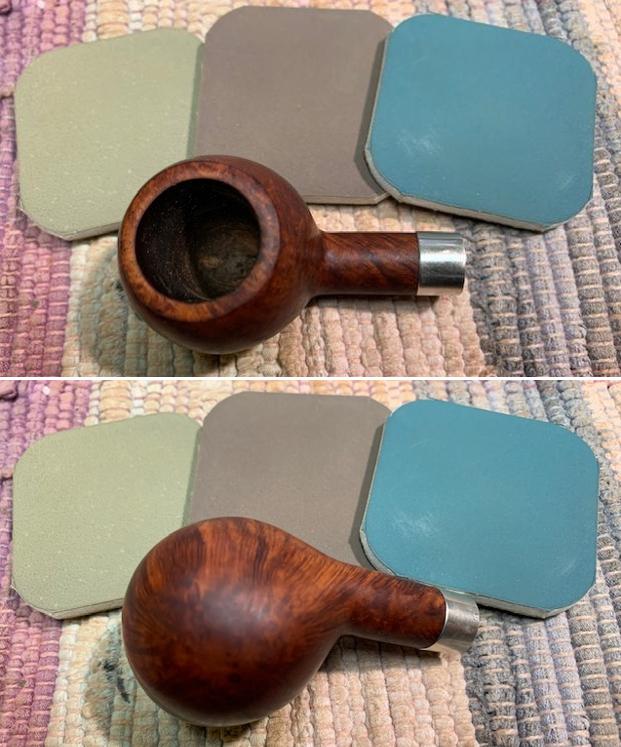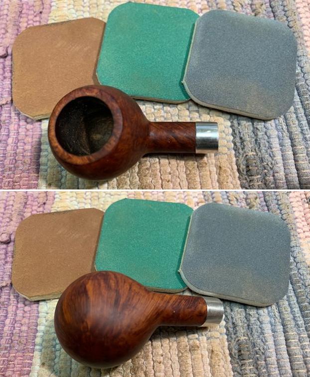I polished the briar with micromesh sanding pads – dry sanding with 1500-12000 grit pads. I wiped the briar down with a damp cloth after each pad.