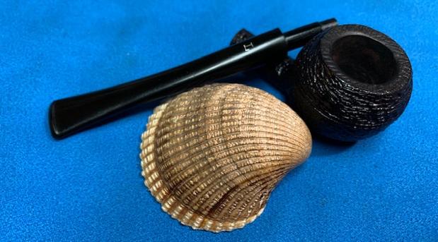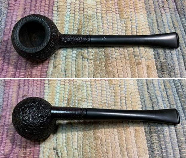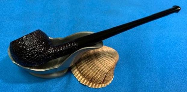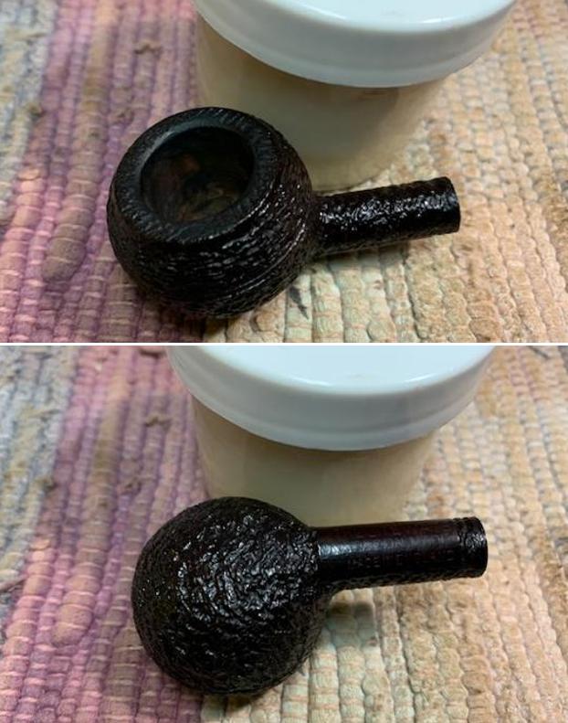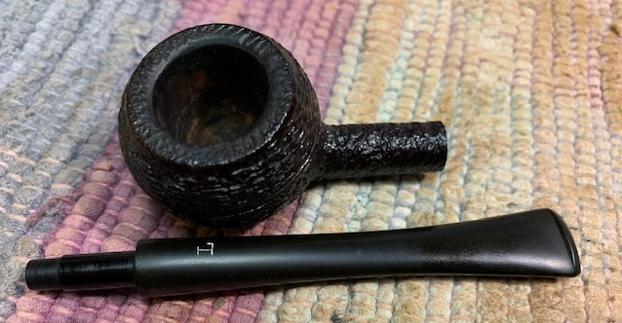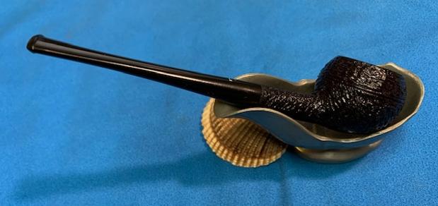Jeff carefully cleaned the pipe. He reamed it with a PipNet pipe reamer and then cleaned up the reaming with a Savinelli Fitsall Pipe Knife. He scrubbed out the internals of the shank, stem and shank extension with alcohol, pipe cleaners and cotton swabs until the pipe was clean. He scrubbed the exterior of the bowl with Murphy’s Oil Soap and a tooth brush to remove the grime and grit on the briar and lava on the rim top. The finish looks much better and has a deep richness in the colour that highlights the dimensions of the rusticated briar. The rim top looked good with some darkening on the top and damage to the back outer edge of the bowl. He soaked the stem in Briarville’s Pipe Stem Deoxidizer and scrubbed it with Soft Scrub to remove the remnants of oxidation. When the pipe arrived here in Vancouver I was amazed it looked so good. Here are some photos of what I saw.