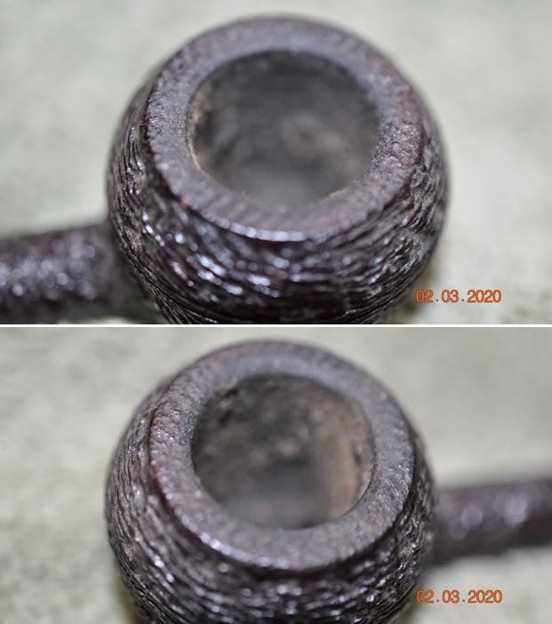 Jeff took photos of the bowl, rim top to show the thickness of the cake in the bowl and the thick lava on the rim top. The rim top and both inner and outer edges looked good. He took photos of the top and underside of the vulcanite stem showing the oxidation, calcification and wear on the stem and button.