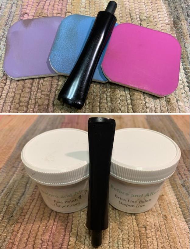 After applying Blue Diamond, the pipe is wiped/buffed with a microfiber cloth (I forgot my felt cloth in Colorado!) to remove the vestiges of compound dust that can crust on the surface. I don’t want the compound dust mixing with the wax coming up.