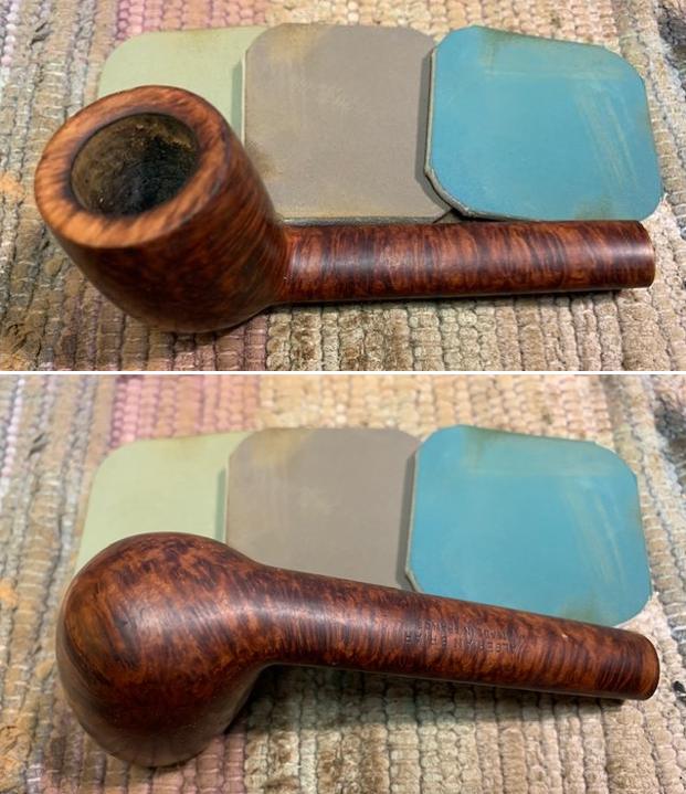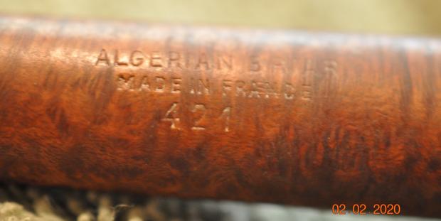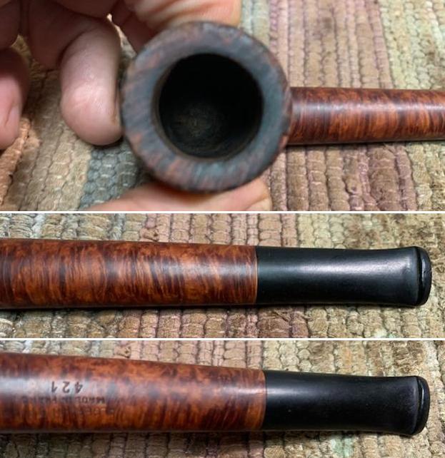 Now it was time to work on some of the single pipes that he had. The next one of these is a beautifully grained Canadian that is stamped on the underside of the shank. It reads ALGERIAN BRIAR [over] Made in France [over] 421. The stamping is clear and readable. It is a nice looking Canadian. The short taper vulcanite stem does not have any stamping on either side. It is the lower pipe in the above photo.