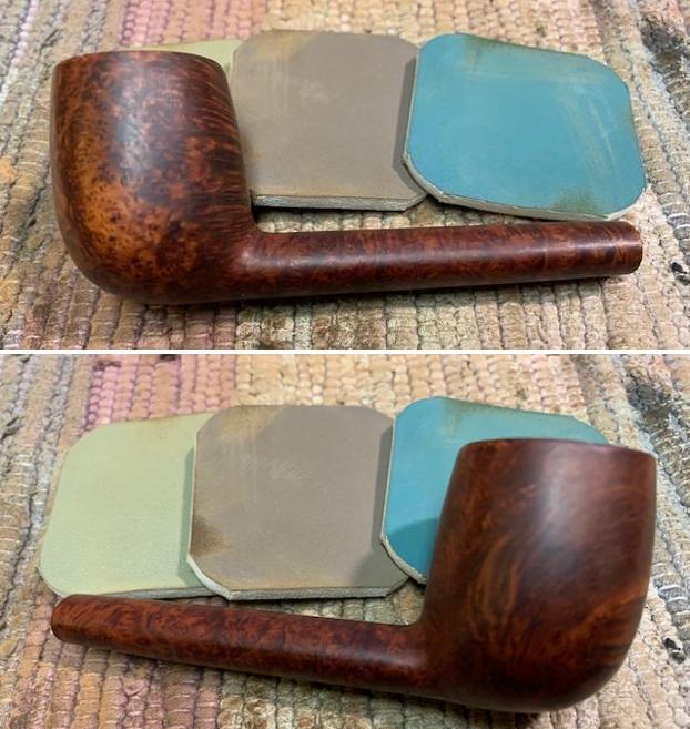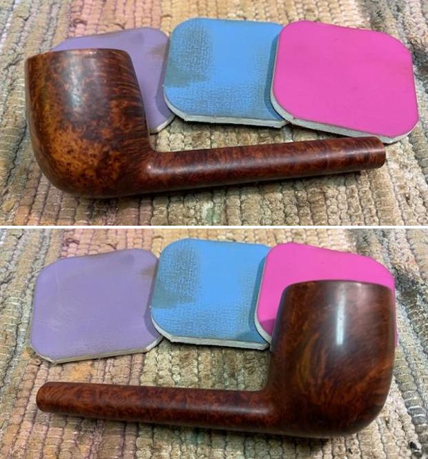 I polished the briar with micromesh sanding pads – dry sanding with 1500-12000 grit pads. I wiped the briar down after each grit with a damp cloth. The grain began to really stand out.