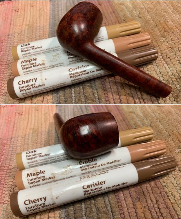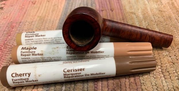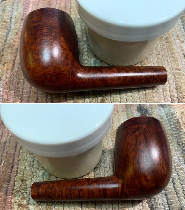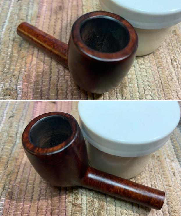With the bowl and the stem finished I put the beautiful Algerian Briar 421 Canadian back together and buffed it on the wheel using Blue Diamond to give it a shine. I gave the bowl and the stem multiple coats of carnauba wax on the wheel. I buffed it with a clean buffing pad to raise the shine. I hand buffed it with a microfiber cloth to deepen the shine. It really has some great looking grain. The dimensions of the pipe are – Length: 5 ¾ inches, Height: 1 ½ inch, Outside diameter of the bowl: 1 1/8 inches, Chamber diameter: ¾ of an inch. The weight of this large pipe is 1.13 ounces /31 grams. This Algerian Briar Canadian is another great find in this collection. I try to use the same prop with the pipes I photograph to give a sense of size and proportion of the pipe. You can see from the dimensions given above this is a petite pipe that makes this small shell seem quite large. It is much more beautiful in person than these photos can capture. I will be putting it on the rebornpipes store soon. If you would like to add it to your collection let me know. This is another pipe that has the possibility of transporting the pipe man or woman back to a slower paced time in history where you can enjoy a respite. Thanks for walking through the restoration with me.