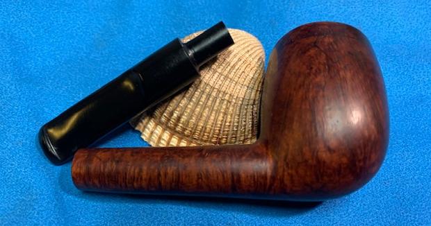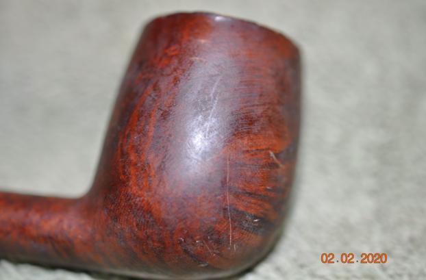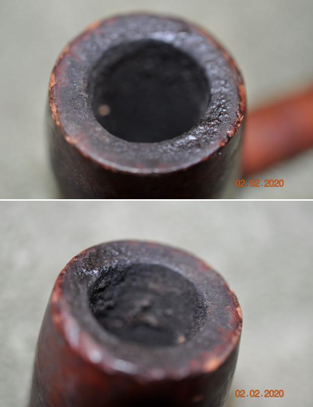 Jeff carefully cleaned the pipe. He reamed it with a PipNet pipe reamer and then cleaned up the reaming with a Savinelli Fitsall Pipe Knife. He scrubbed out the internals of the shank, stem and shank extension with alcohol, pipe cleaners and cotton swabs until the pipe was clean. He scrubbed the exterior of the bowl with Murphy’s Oil Soap and a tooth brush to remove the grime and grit on the briar and lava on the rim top. The finish looks much better and has a deep richness in the colour that highlights the dimensions of the grain. The rim top was in rough condition with nicks and gouges on the top and on the inner and outer edges. He soaked the stem in Briarville’s Pipe Stem Deoxidizer and scrubbed it with Soft Scrub to remove the remnants of oxidation. When the pipe arrived here in Vancouver I was amazed that it looked so good. Here are some photos of what I saw.