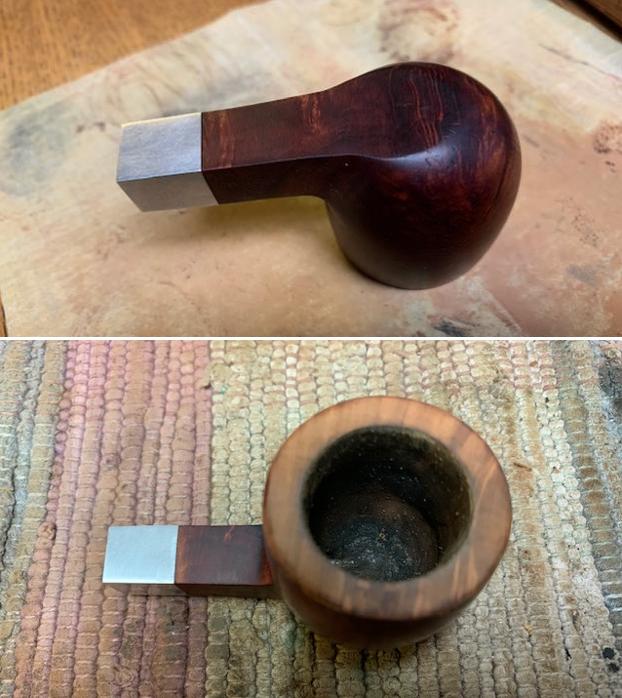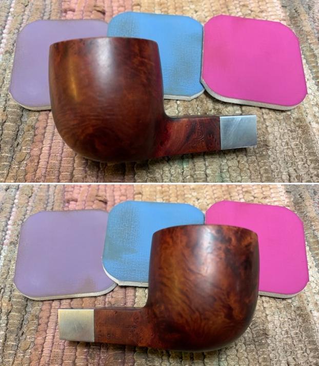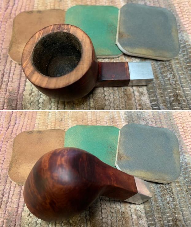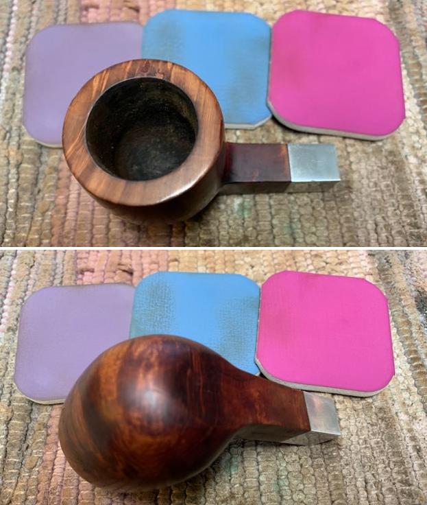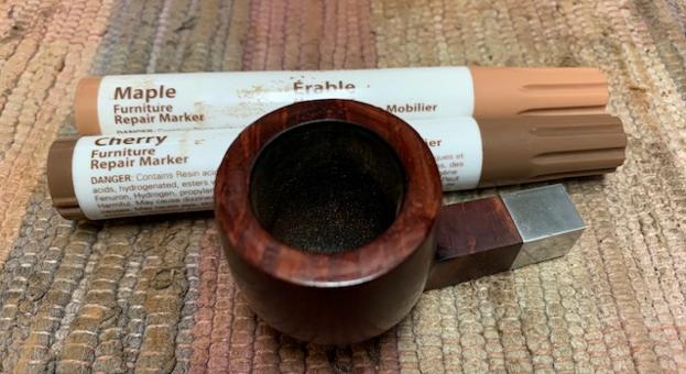I stained the rim top with a Maple and a Cherry Stain pen to match the surrounding briar. Once it is buffed the match should be perfect.