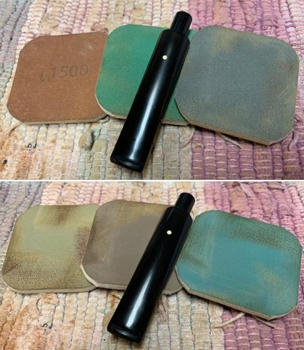 I polished out the light tooth marks on the stem with micromesh sanding pads – wet sanding with 1500-12000 grit sanding pads. I wiped it down after each sanding pad with Obsidian Oil. I polished it with Before & After Pipe Stem Polish – both Fine and Extra Fine.
