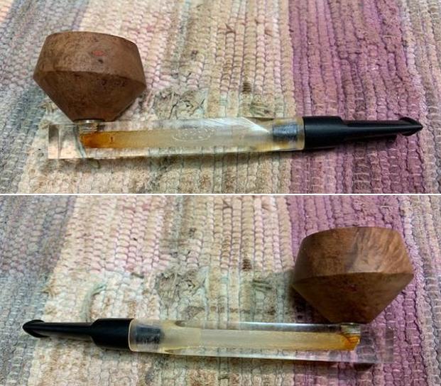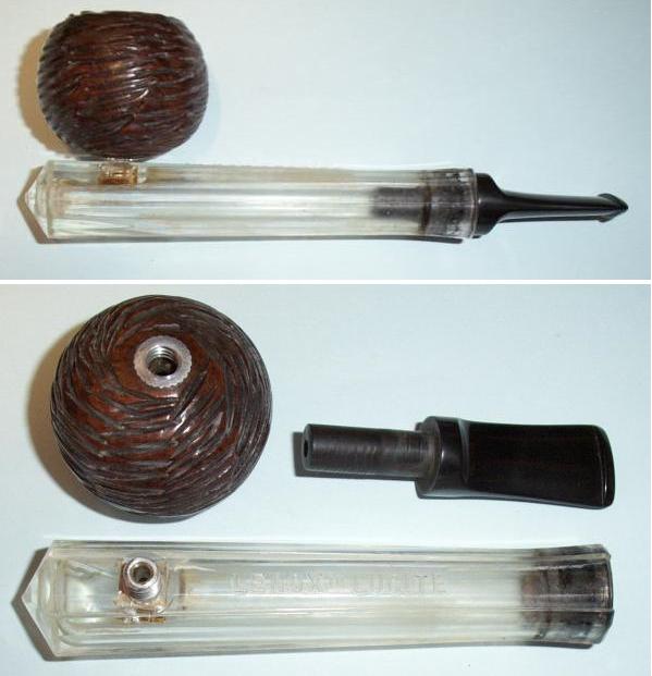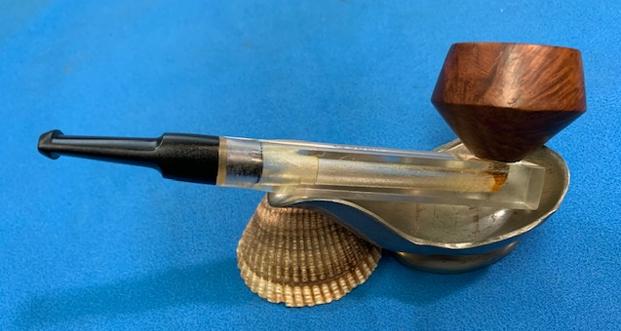 Department : STEM OF OTHER MATERIALS & Screw through bowl. Hard to see the purpose of this one. There would be no signifacant extra cooling and there is no end plug to remove for ease of cleaning. LENOX in LUCITE molded into top of shank… These pipes were certainly on sale in 1951. Overall length 5 5/8 inch (143 m/m). The site also included some photos that I am including below to show the similarity.