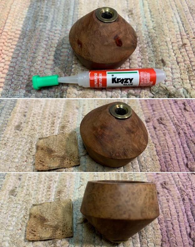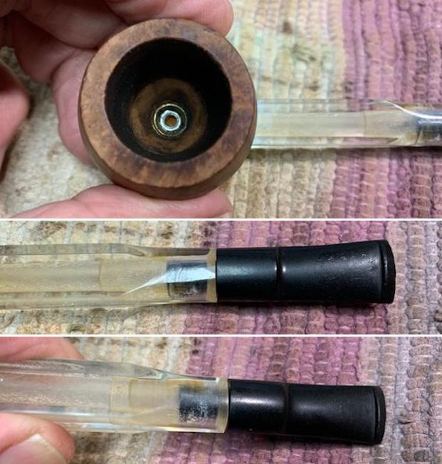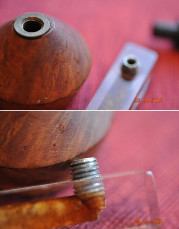 Jeff took the bowl off the acrylic shank and took photos of the threaded metal nipple/tenon that held the bowl on the shank top.