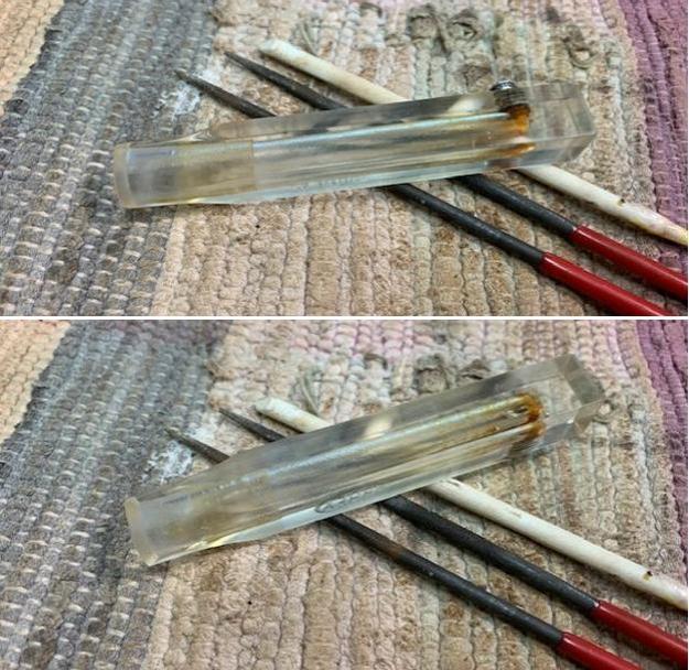 I polished the Lucite barrel with micromesh sanding pads – sanding with 1500-12000 grit pads and wiping it down with Obsidian Oil between pads. It really shined after the polishing.