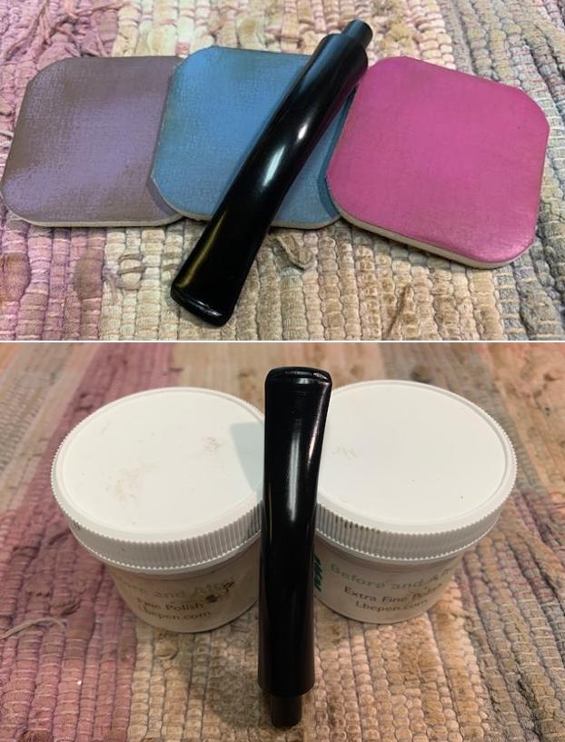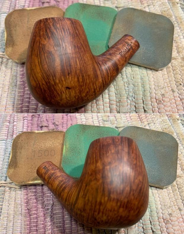 I polished the stem surface with micromesh sanding pads. I wet sanded it with 1500-12000 grit sanding pads. I wiped the stem down after each pad with Obsidian Oil. I polished it with Before & After Stem Polish both Fine and Extra Fine polish. I gave it a final rub down with Obsidian Oil.