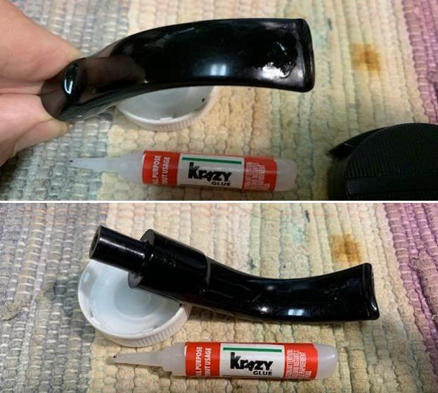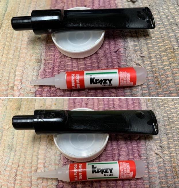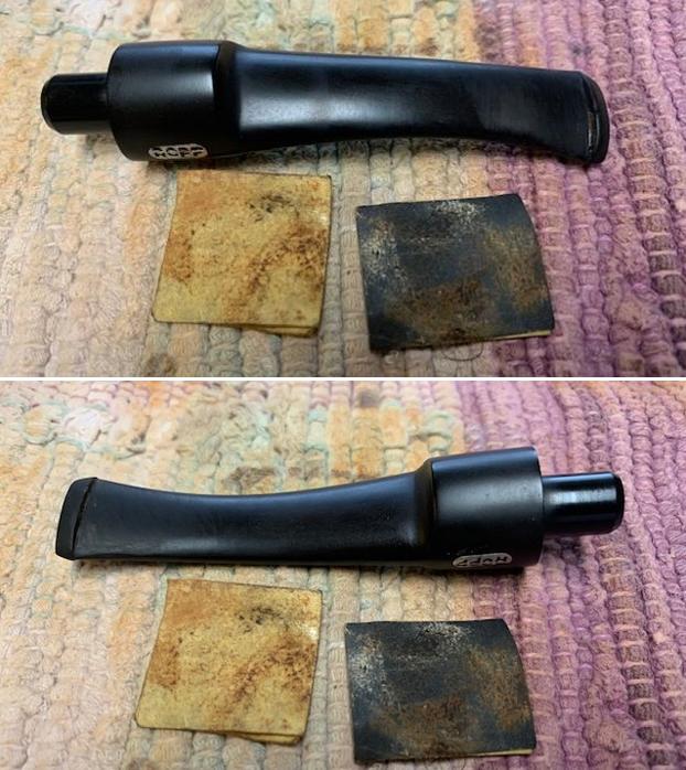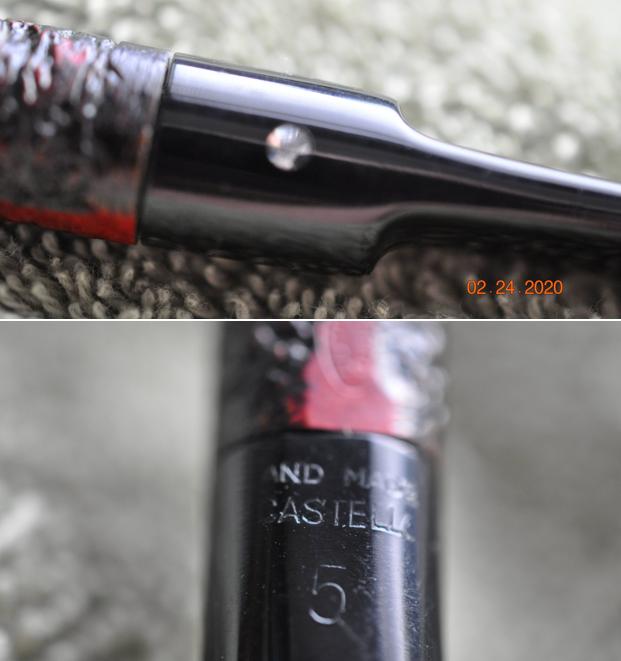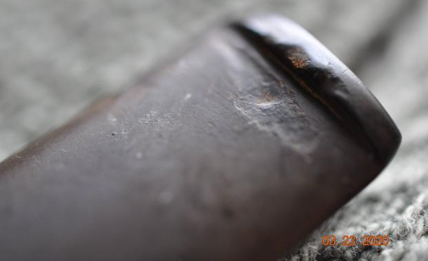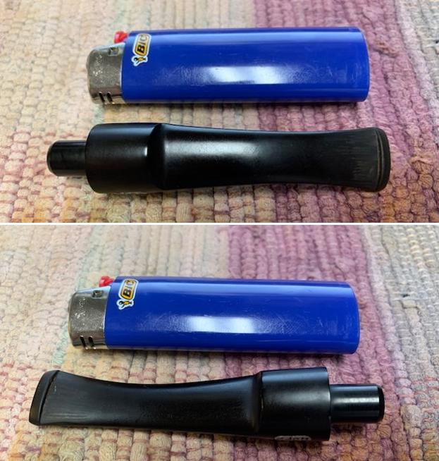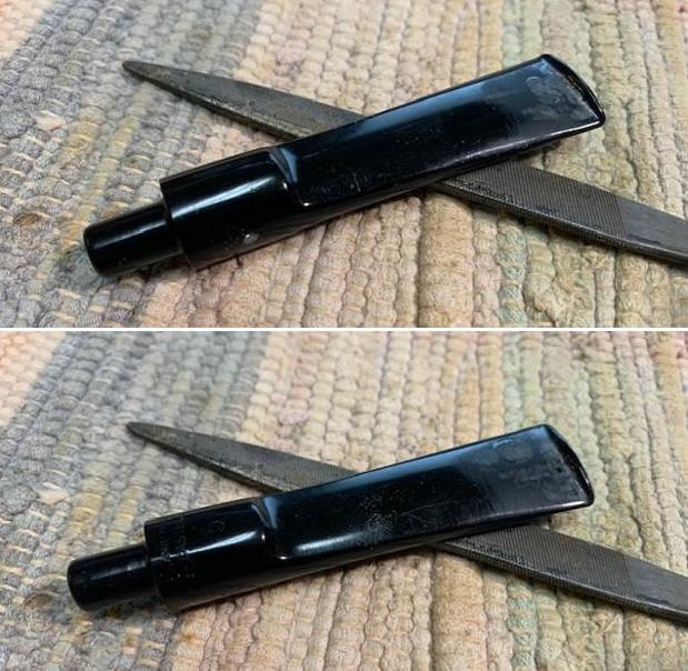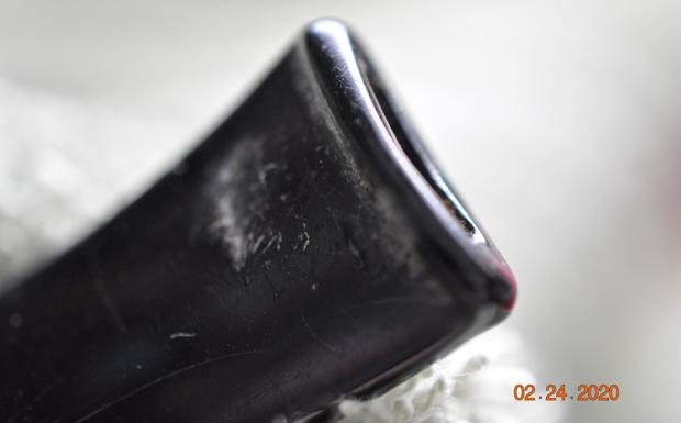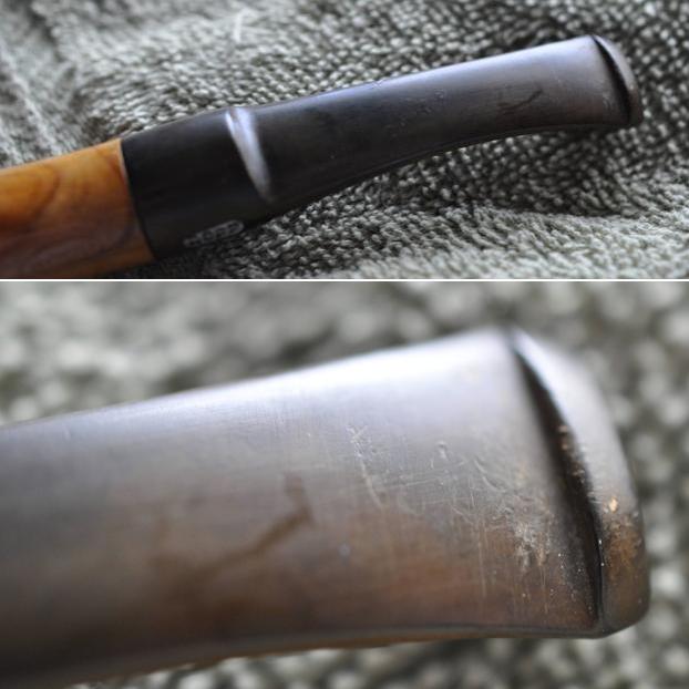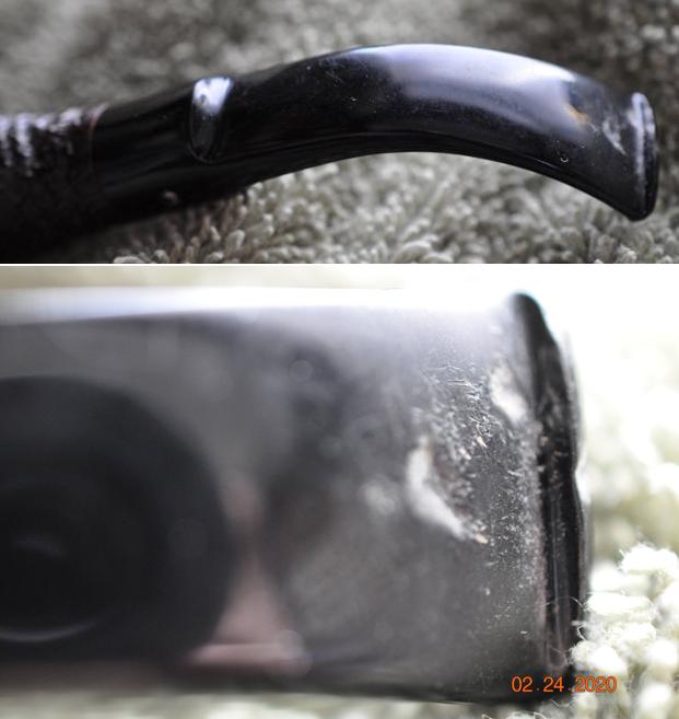 I used a black stain pen to touch up the damaged areas on both top and underside of the shank to help blend in the repair. It looks much better in the photos below even though there is still along ways to go.
