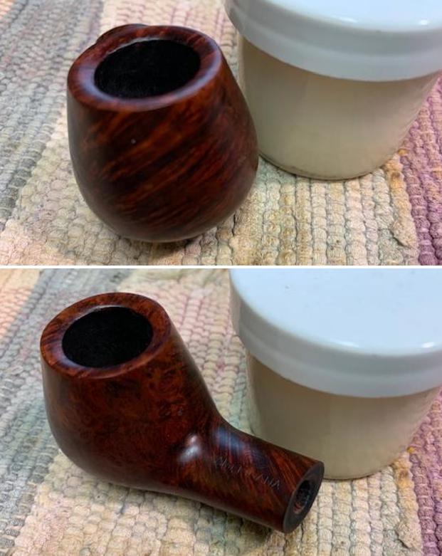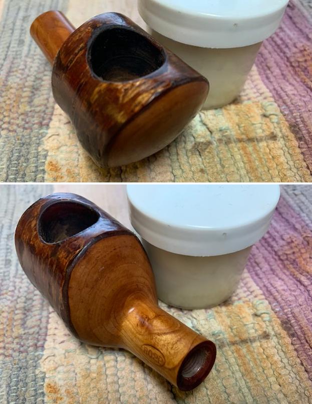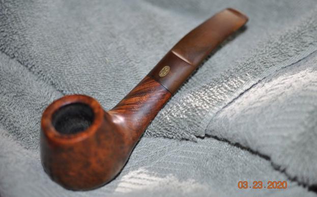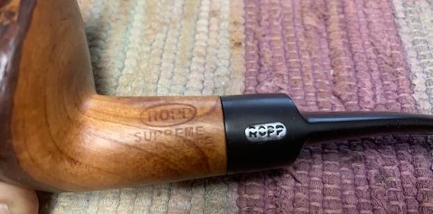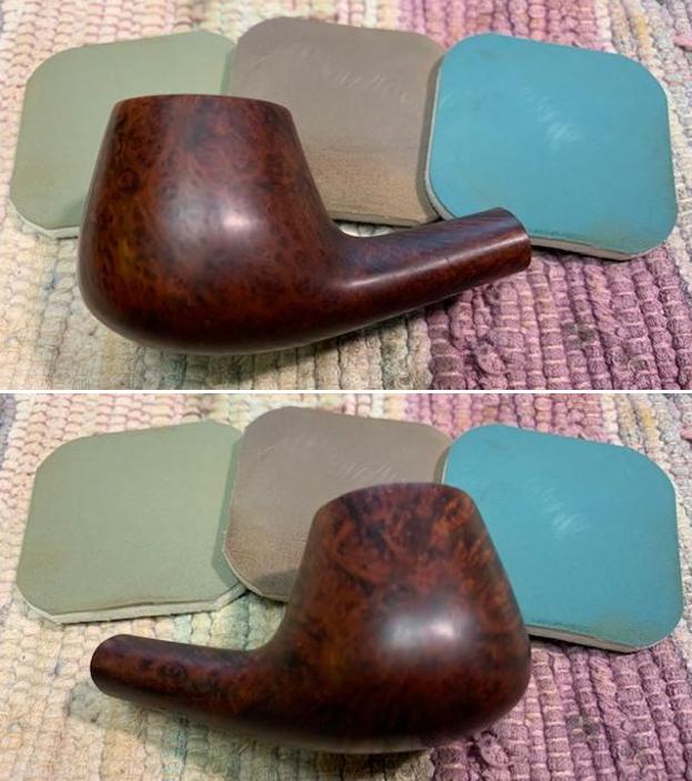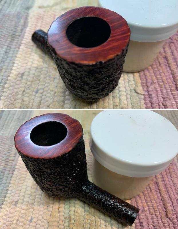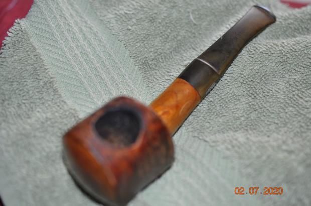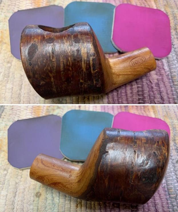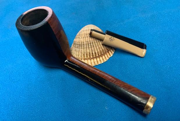 I touched up the gold stamping with Rub’n Buff Antique Gold. I rubbed it on to the stamp on the briar with my finger tip and worked it in to the stamp with a tooth pick. I buffed it off with a soft cloth. The stamp is readable and clear.