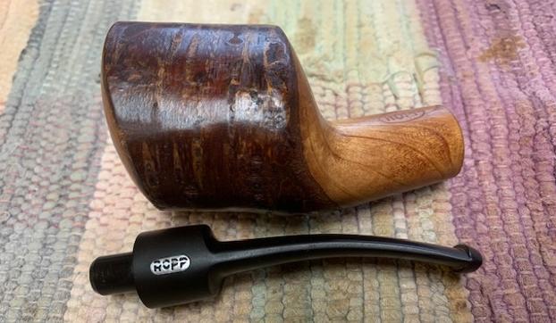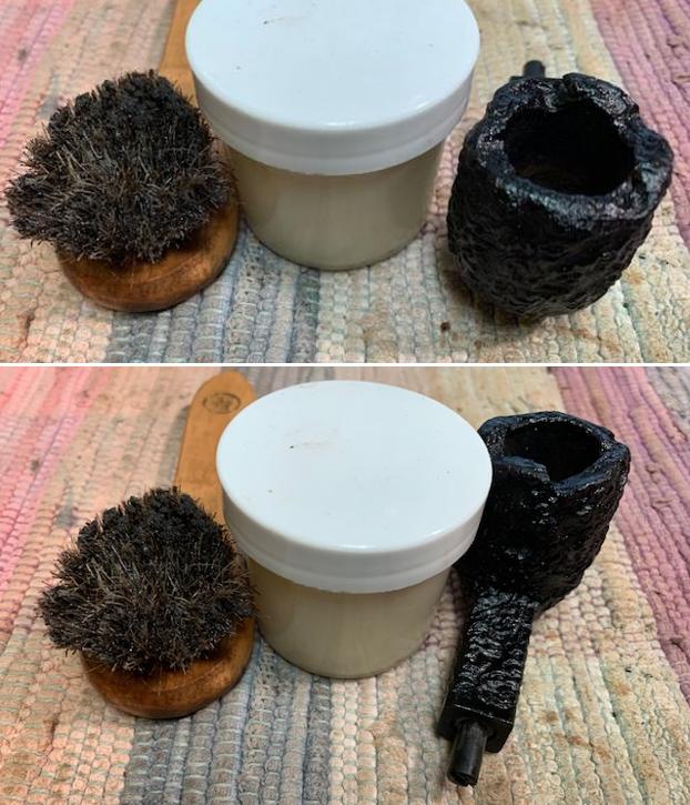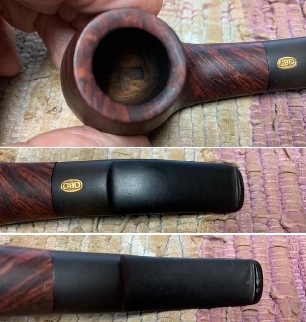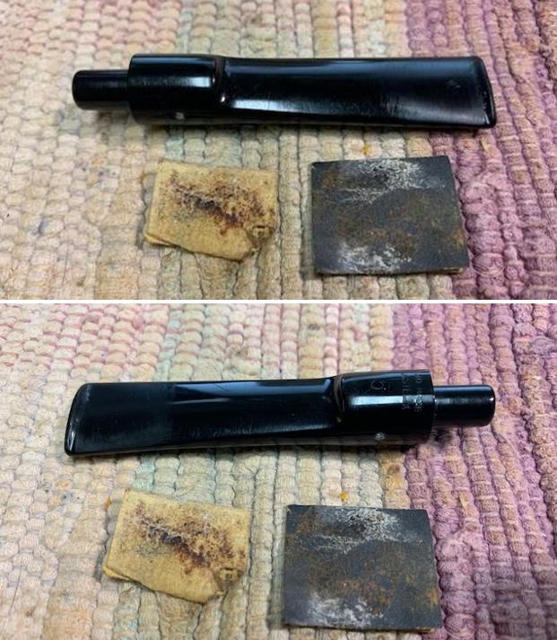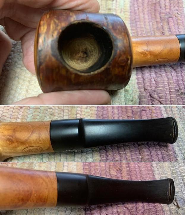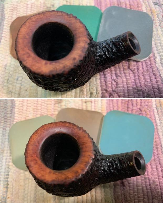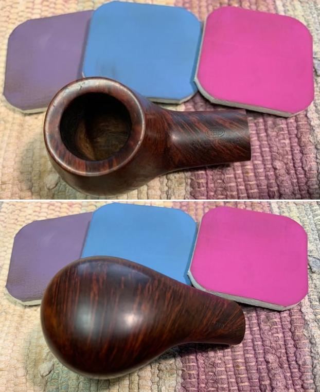 I touched up the gold stamping with Rub’n Buff Antique Gold. I rubbed it on to the stamp on the briar with my finger tip and worked it in to the stamp with a tooth pick. I buffed it off with a soft cloth. The stamp is readable and clear.