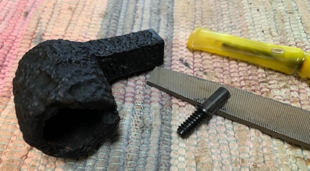 I put the stem on the shank to see what the pipe would look like with the addition of the band. I have to say that I really like the dressy look of the pipe with the band!