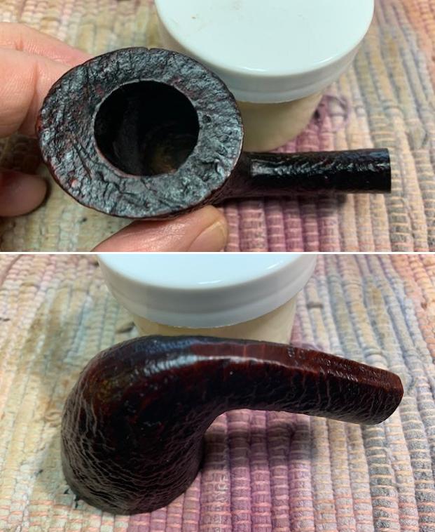 Jeff had cleaned up the pipe following his normal cleaning process. In short, he reamed the bowl with a PipNet pipe reamer and cleaned up the reaming with a Savinelli Fitsall Pipe Knife. He scrubbed the sandblast bowl with undiluted Murphy’s Oil Soap with a tooth brush. He worked over the lava and debris on the rim top and was able to remove it. He rinsed it under running warm water to remove the soap and grime. He cleaned out the inside of the shank and the airway in the stem with alcohol, cotton swabs and pipe cleaners. He scrubbed the stem with Soft Scrub and cotton pads to remove the debris and oils on the stem. He soaked it in a bath of Briarville’s Pipe Stem Deoxidizer to remove the oxidation. He rinsed it with warm water and dried it off. I took photos of the pipe once I received it. It really looked good.