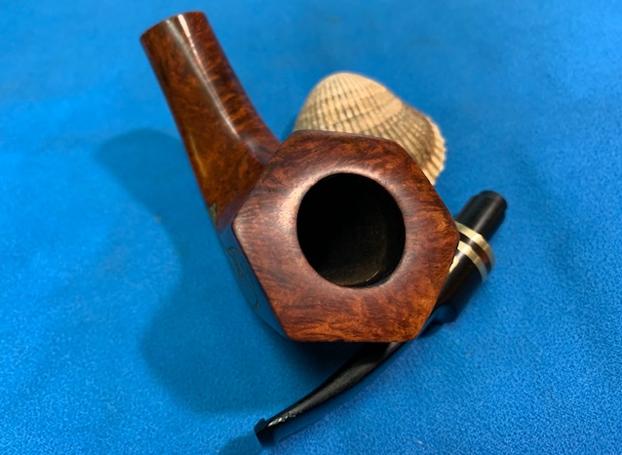 Looking at the pipe from the top down it is quite a pretty pipe and I had a good idea why Jeff was drawn to it. The hexagonal shape of the bowl and the finish was quite nice as was the grain on the rim top. Okay maybe it would turn out to be a nice looking pipe when it was cleaned up! Time would tell.
