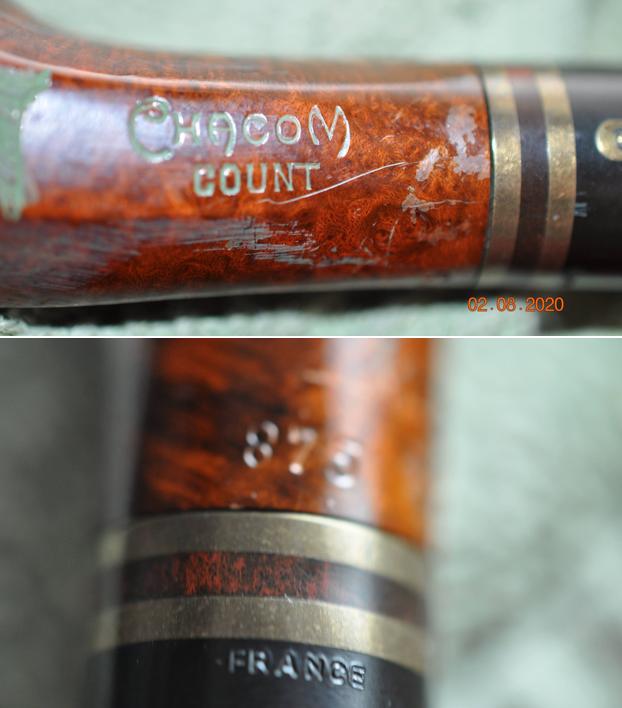 I turned to Pipephil to see if there was any information on the Chacom Count line of pipes (http://pipephil.eu/logos/en/logo-chacom.html). Of course there was not any information that directly referred to the line and there was nothing with the kind of carving on this one. I quote the top bar of the article there.