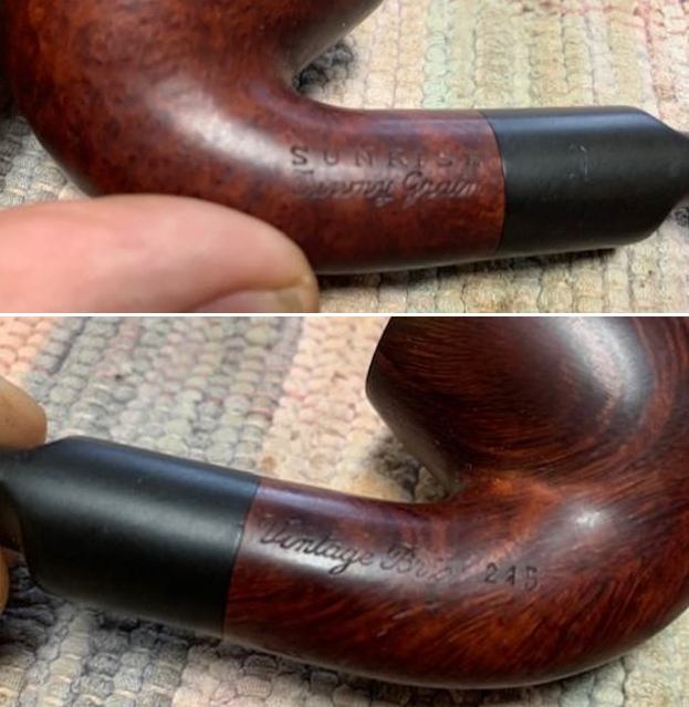 The Sunrise brand perfectly illustrates the split pipe production of a same label between Saint Claude (FR) and London (GB) during the period Chapuis Comoy and Comoy closely collaborated (prior to early 1970s).