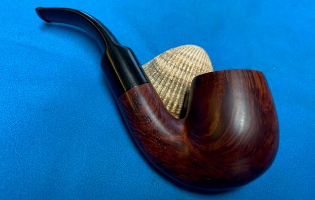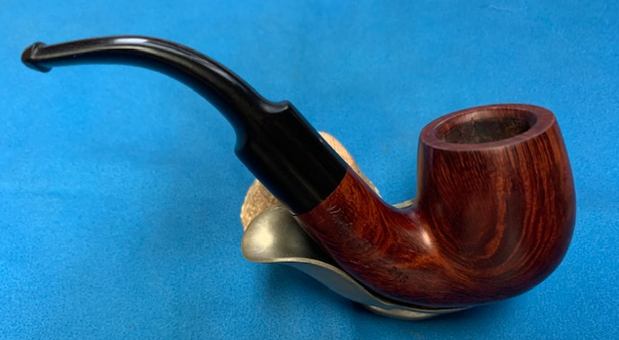 This Comoy’s Made Sunrise Tawny Grain Vintage Briar 215 Bent Billiard is a great looking pipe now that it has been restored. The brown stained finish around the bowl is quite beautiful and highlights grain very well. The finish works well with the polished vulcanite bent saddle stem. I put the stem back on the bowl and carefully buffed the pipe with Blue Diamond on the buffing wheel using a light touch on the briar. I gave the bowl and the stem multiple coats of carnauba wax on the buffing wheel and followed that by buffing the entire pipe with a clean buffing pad. I hand buffed the pipe with a microfiber cloth to deepen the shine. The finished Sunrise Tawny Grain Vintage Briar Bent Billiard sits nicely in the hand and feels great. Give the finished pipe a look in the photos below. The dimensions of the pipe are Length: 5 inches, Height: 1 ¾ inches, Outside diameter of the bowl: 1 ¼ inches, Chamber diameter: ¾ inch. The weight of the pipe is 56 grams/1.98 ounces. I will be putting it on the rebornpipes store shortly. If you are interested in adding this pipe to your collection send me a message or an email. Thanks for reading this blog and my reflections on the pipe while I worked on it. There are many more to come!